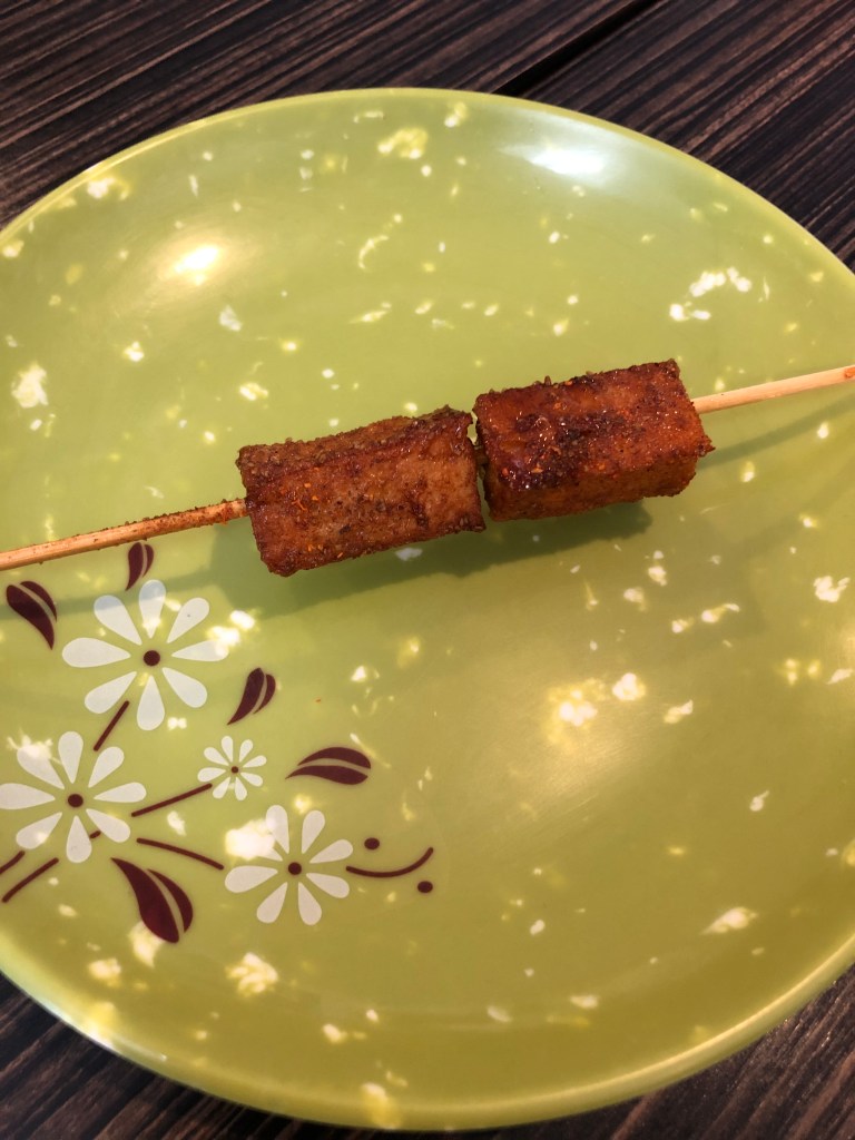 Our tour started at Jiu Thai Asian Cafe. They serve northern-style Chinese cuisine including their hand crafted biang biang noodles. Along with the noodles, we had dumplings and skewers of lamb and fish tofu. We were concerned when we saw the chili pepper flakes in the noodles, but they were not too spicy when paired with the other food. The dumplings were our favorite, but we did not have anything we wouldn’t try again. The most unique thing was the fish tofu. It was not tofu, it was made from fish but had a soft texture like tofu. Not bad, but interesting and definitely different.