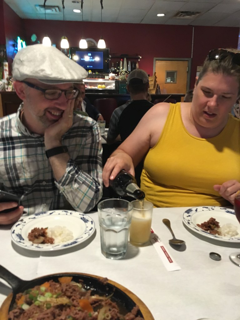 The next stop was Poong Mei Asian Bistro for some Korean food. We were pretty thirsty by this point, so we got some adult beverages to enjoy as we waited for our food. Plum wine and Asahi definitely take us back to our time in Japan and make us smile! The Korean dishes we tried were so good! We had bibimbap, a green onion omelette, and mountain yam noodles. We also had some little dishes of “snack” foods like kimchi, steamed egg, pickled radish, etc. We will definitely be taking my parents here the next time they visit and we highly recommend it if you want Korean food.